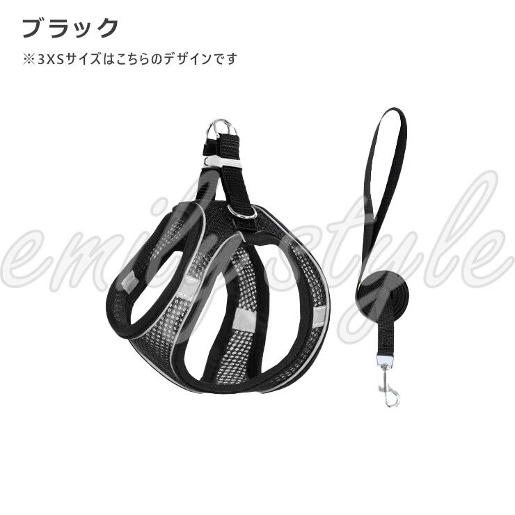 やわらかくて軽い、メッシュ素材のハーネス。着け心地も快適なので、ハーネスが初めてのパピーや皮膚の弱いワンちゃん、高齢犬にもおすすめです。サイズは3XS~XSで超小型犬のサイズにも対応。お揃いのリードが付いています。