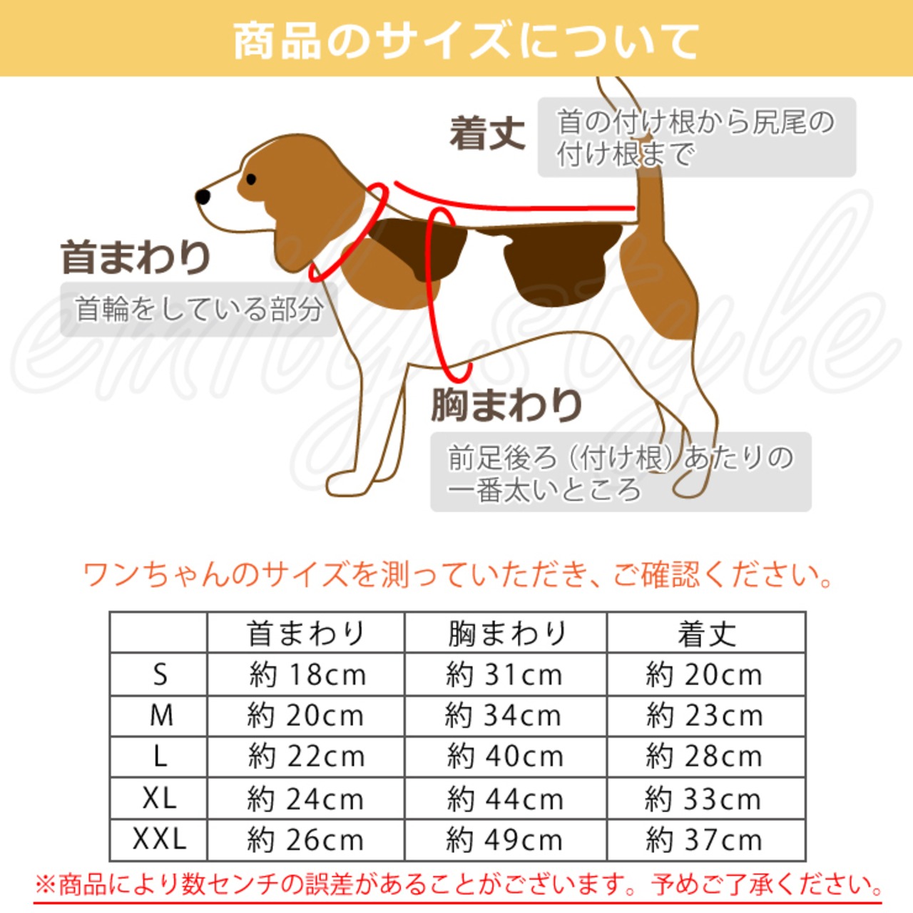 ・犬種や体重よりも、個々の採寸を重視して余裕をもってお買い求めください。