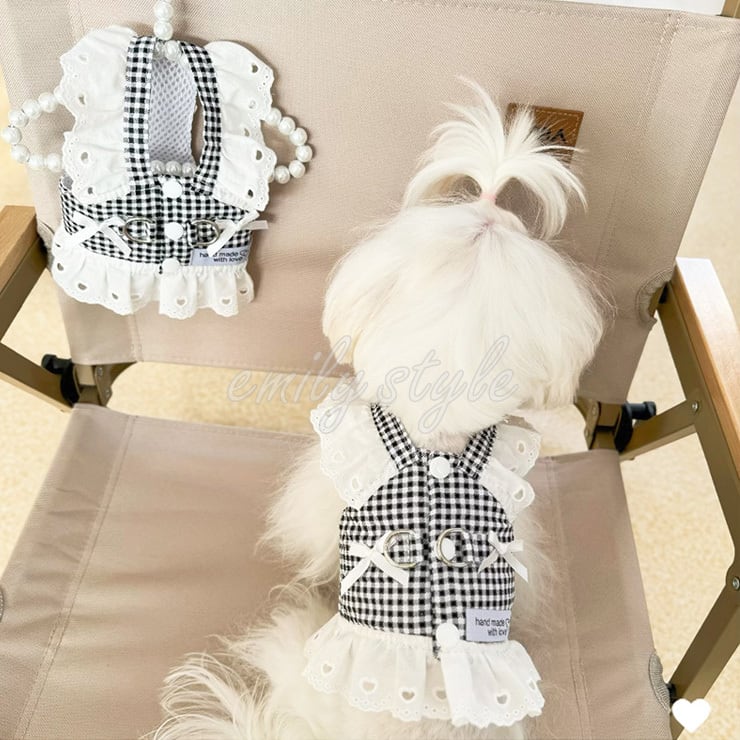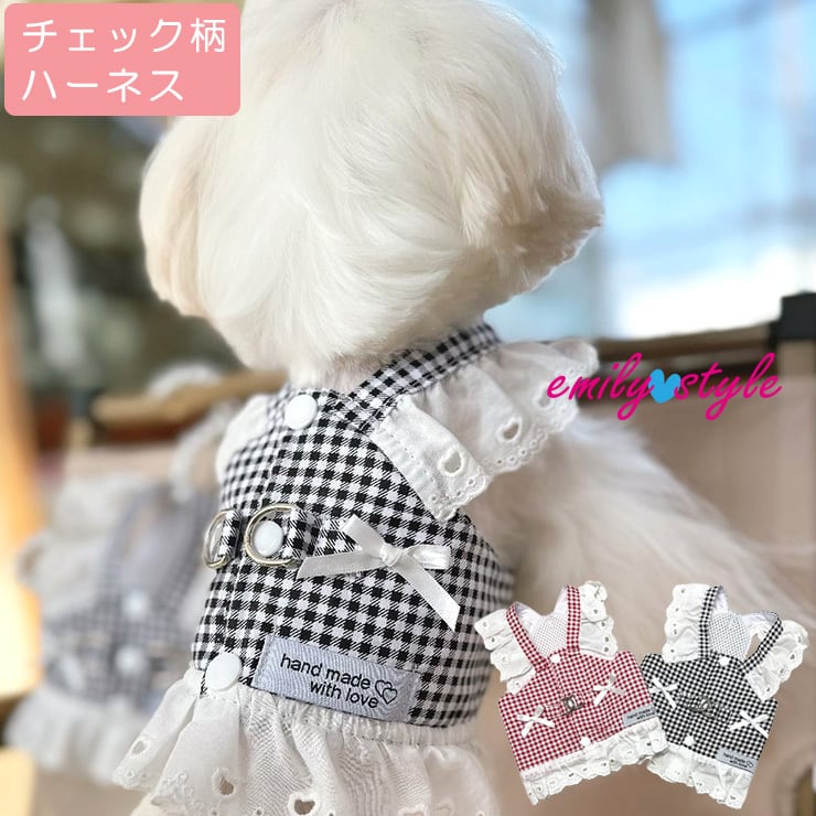 【レース付きチェック柄ハーネス】ハーネス 犬 ソフト メッシュ パピー 高齢犬 かわいい おしゃれ お散歩 女の子 簡単装着 ドッグ エミリースタイル emilystyle | emilystyle エミリースタイル ペットグッズ&かわいい雑貨のお店