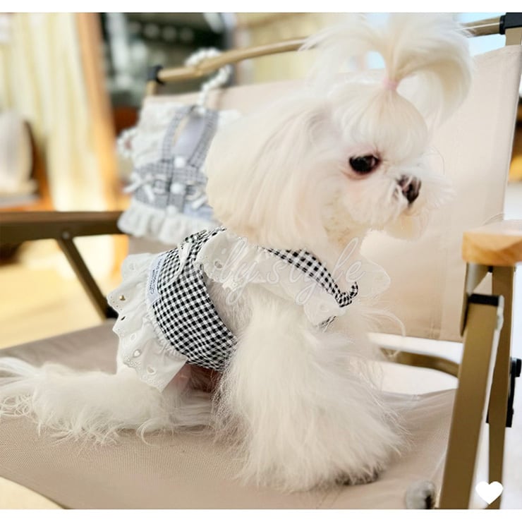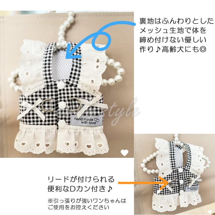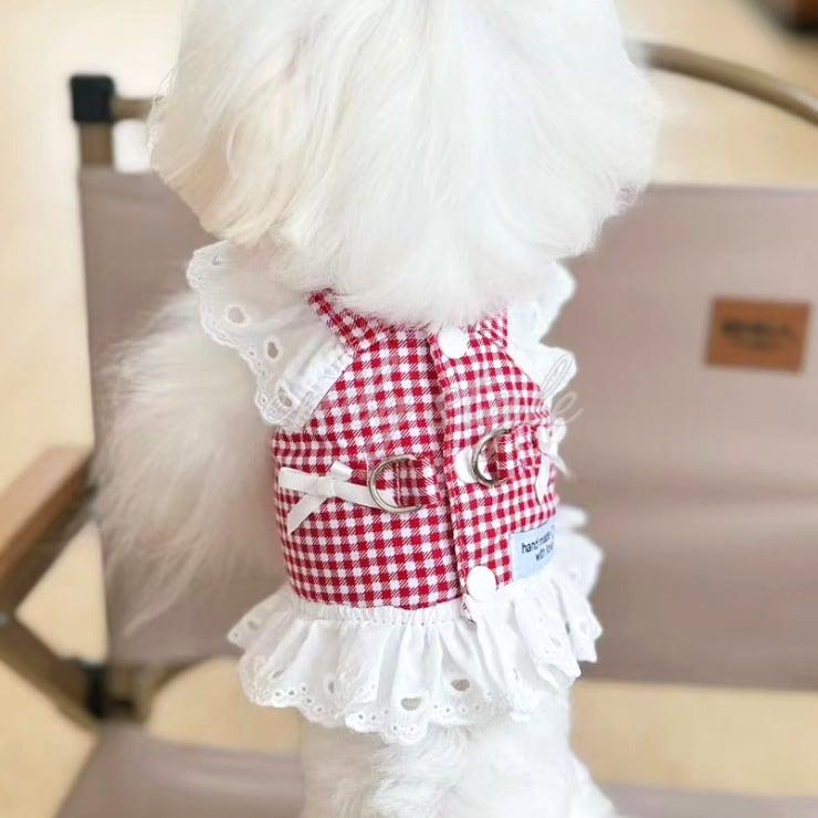 レース&チェック柄のガーリーなデザインのハーネス♪