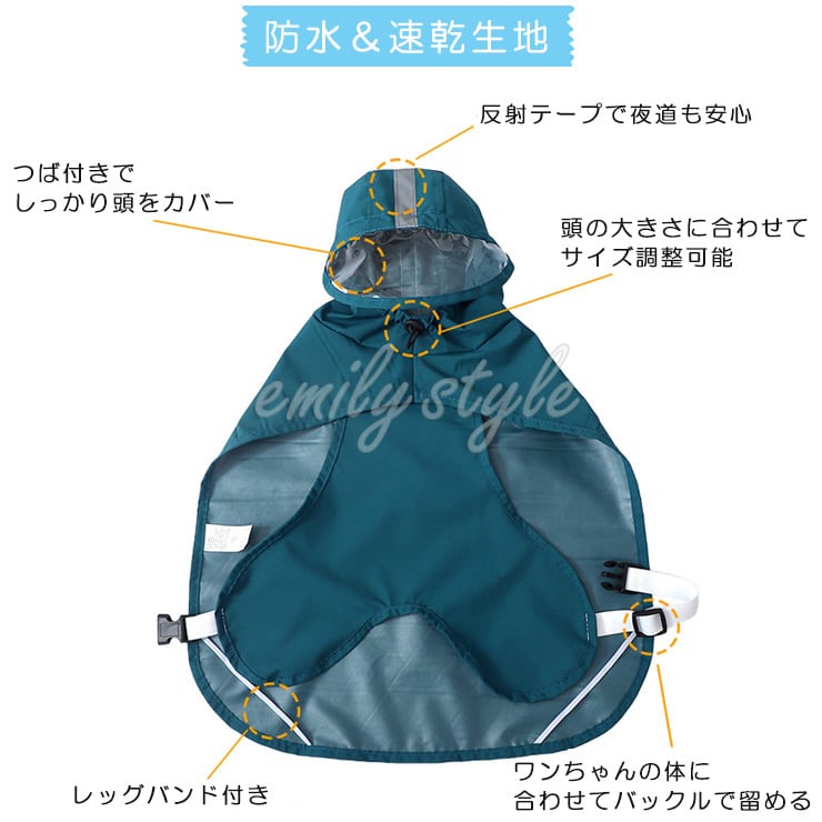 犬 レインコート レインウエア ポンチョドッグ ペットウェア 犬用レインコート 可愛い ドッグウェア 雨具 犬服 中型犬 大型犬 いぬ フード付き防水 着せやすい カッパ 防水 着脱簡単 ペット 軽量 お散歩 お出かけ ペット ウエア 犬 かわいい エミリースタイル emilystyle | emilystyle エミリースタイル ペットグッズ&かわいい雑貨のお店