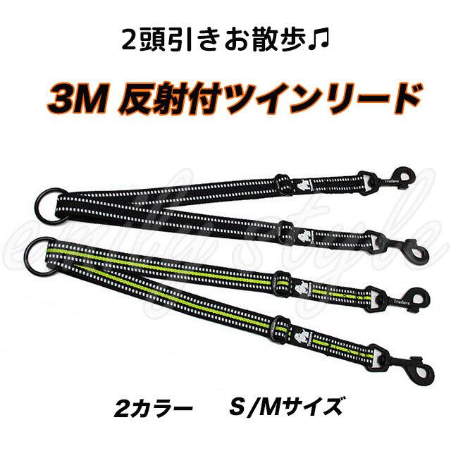 3M反射素材 の ツインリード ☆ ダブルリード 2頭引き用リード お散歩 お出かけ 犬 ペット ダブル アタッチメント 反射 多頭飼い 長さ調節可 リード 2頭引き 兄弟 姉妹 エミリースタイル emilystyle | emilystyle エミリースタイル ペットグッズ&かわいい雑貨のお店