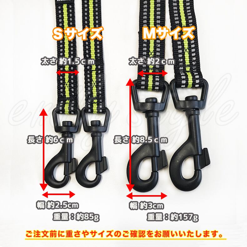 それぞれのリードの長さが調節可能となっている為、首輪とハーネスになどダブルリードとして
