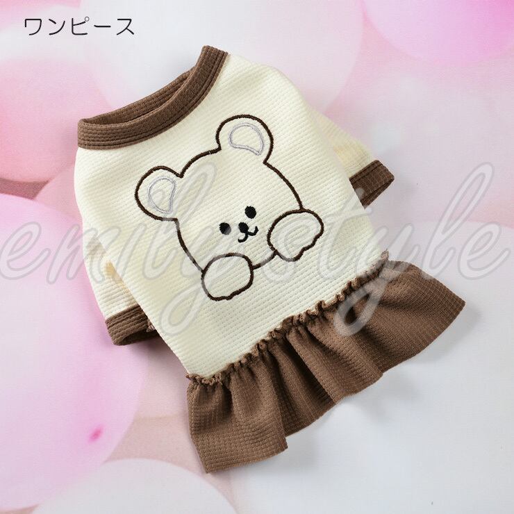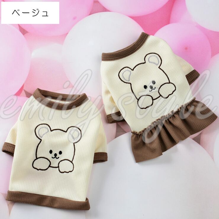 【選べるタイプ&カラー♪】犬 服 ペットウェア ワンピース チュニック ワッフル素材 ドッグウェア 洋服 トップス 重ね着 袖あり オールシーズン クマちゃんワッフルウェア くま 部屋着 お散歩 ウェア エミリースタイル emilystyle | emilystyle エミリースタイル ペットグッズ&かわいい雑貨のお店